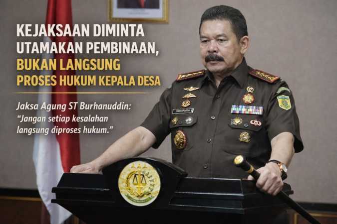HARIANSOLORAYA.COM, JAKARTAย  || Jaksa Agung ST Burhanuddin menegaskan bahwa keberhasilan institusi penegak hukum tidak diukur dari banyaknya kepala desa yang ditetapkan sebagai tersangka. Ia meminta seluruh jajaran Kejaksaan mengedepankan pendekatan yang lebih bijak, profesional, dan proporsional dalam menangani persoalan di tingkat desa.